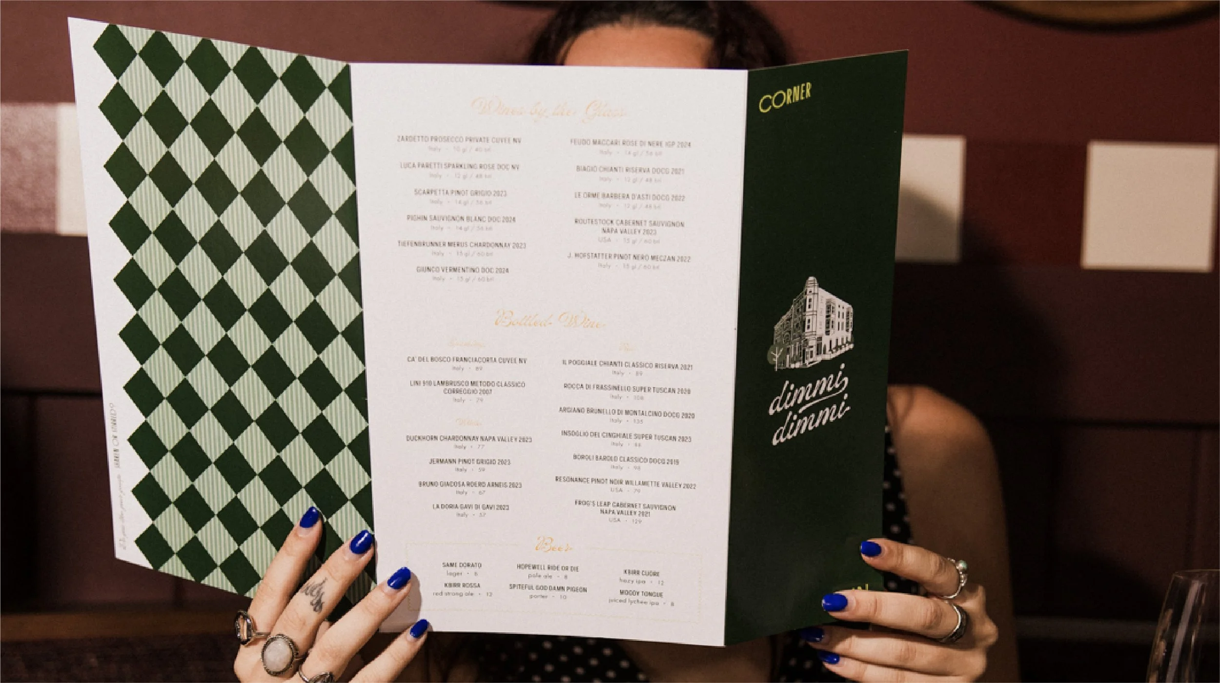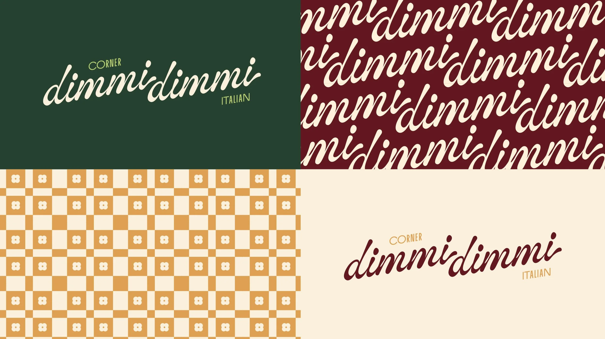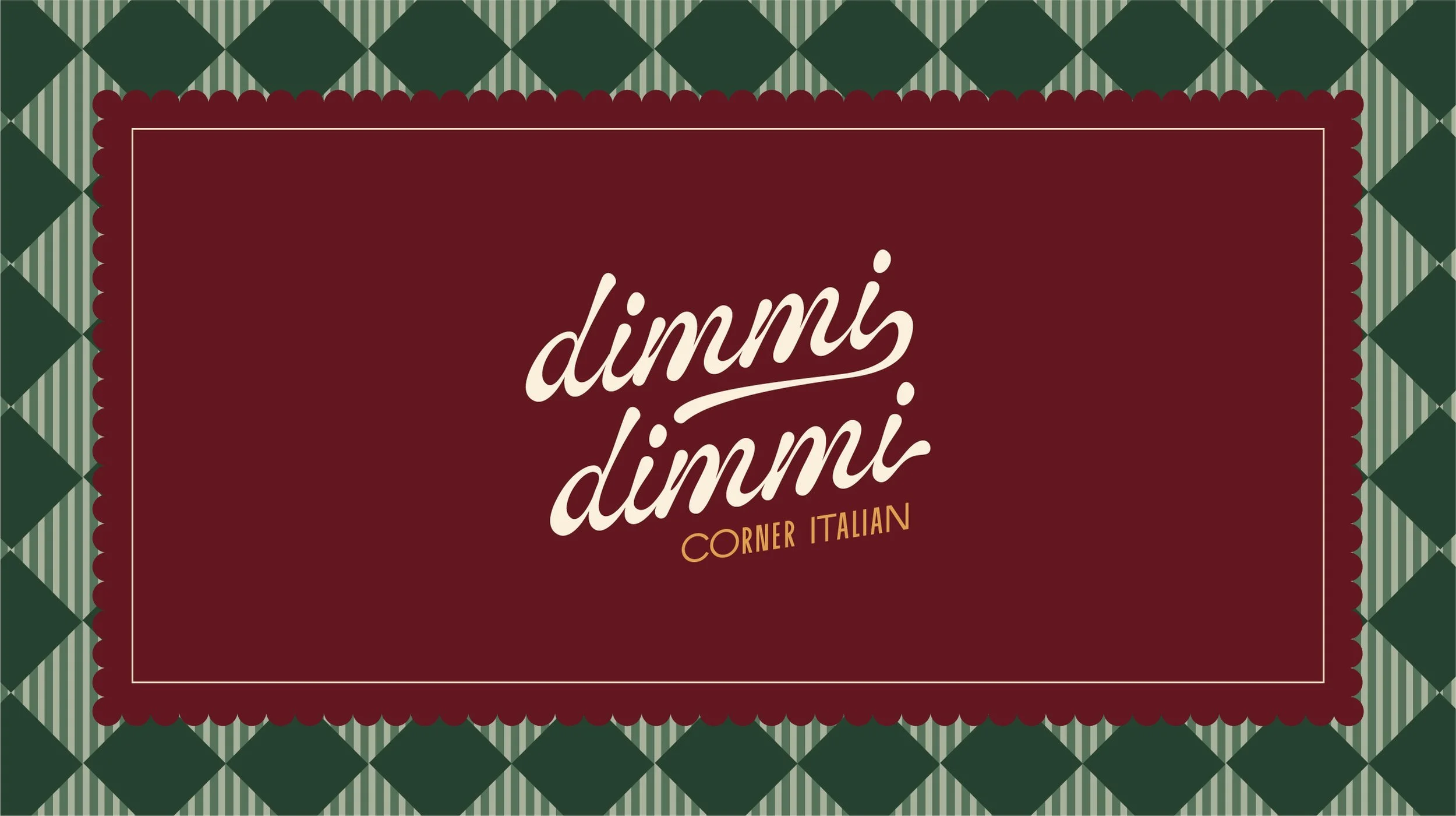Leaning into the communal-side of gatherings, Dimmi Dimmi celebrates timeless stories served around delicious food. The identity takes cues of inspiration from the nonnas in the kitchen, who bring an eclectic liveliness that’s cozy and welcoming. There’s a homeyness to the nonna and a sultry past that fused together is familiar and enticing.