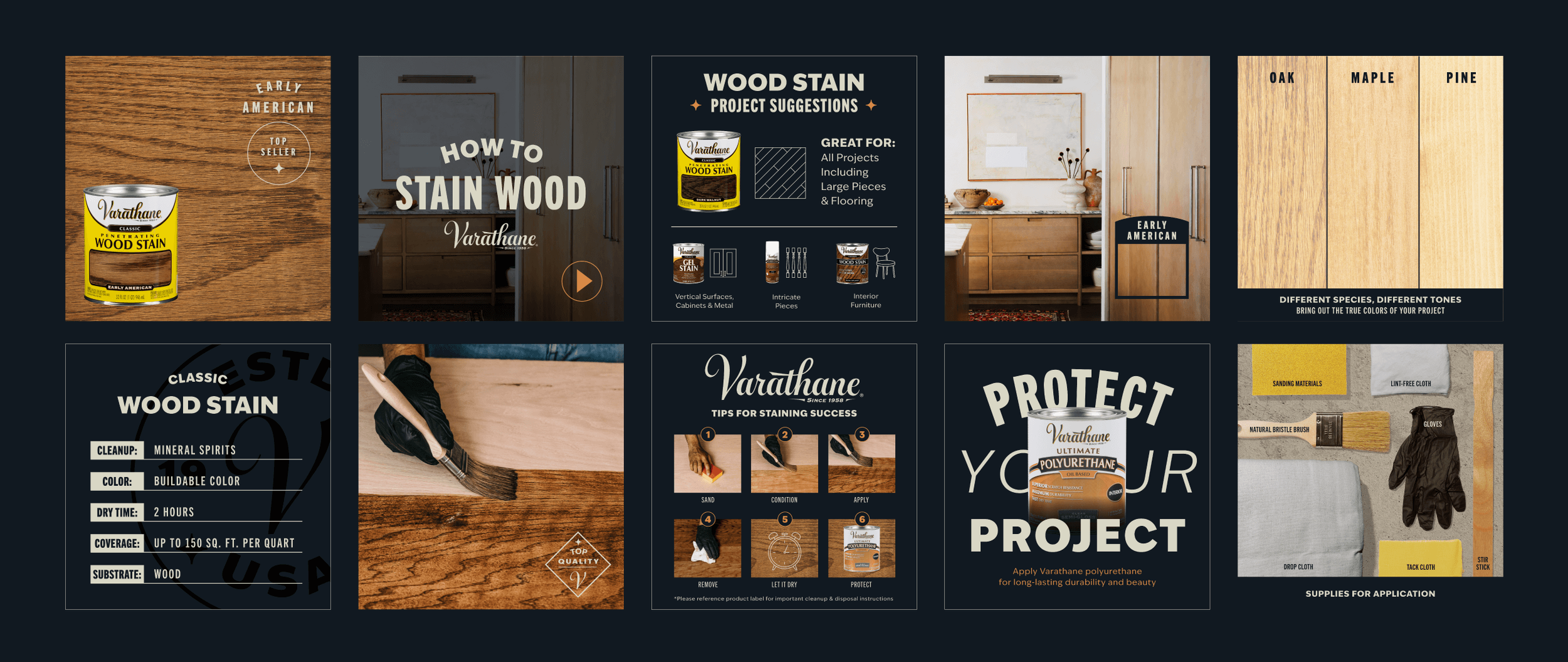 We partnered with Varathane to unify the brand from the inside out — refining its identity architecture, clarifying its visual language, and building a scalable system that aligned packaging, e-commerce, social, and trade into one disciplined, modern expression.